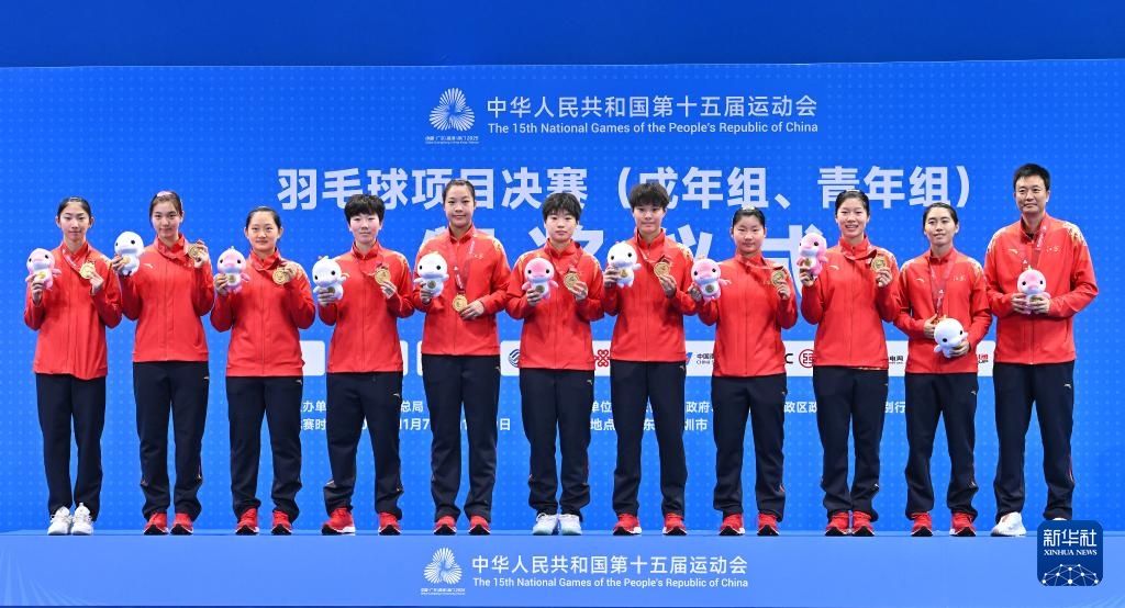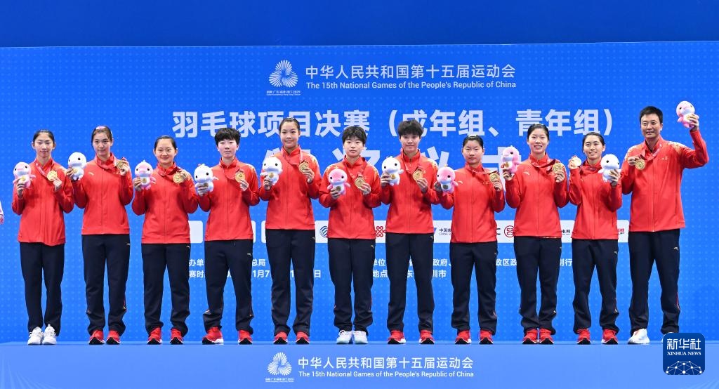 當(dāng)日,在深圳進行的第十五屆全國運動會羽毛球18歲以下女子團體決賽中,江蘇隊3比1戰(zhàn)勝廣東隊,奪得冠軍。