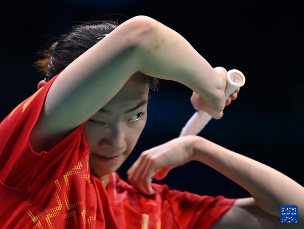 11月13日,江蘇隊選手徐文婧在女單比賽中。她2比0戰(zhàn)勝廣東隊選手沈梓妍。