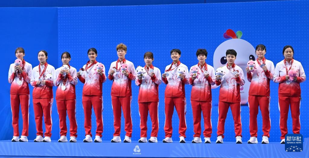 11月13日,亞軍廣東隊在頒獎儀式上合影。
