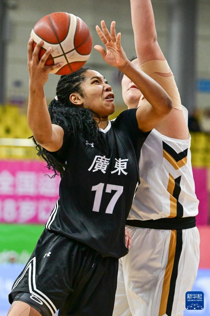 11月13日,廣東隊球員艾楚姬(左)在比賽中進攻。