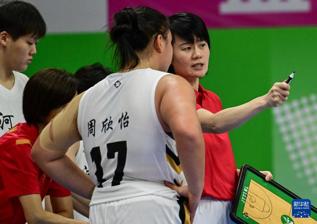 11月13日,河南隊主教練宗星星(右一)在比賽暫停時布置技戰(zhàn)術(shù)。