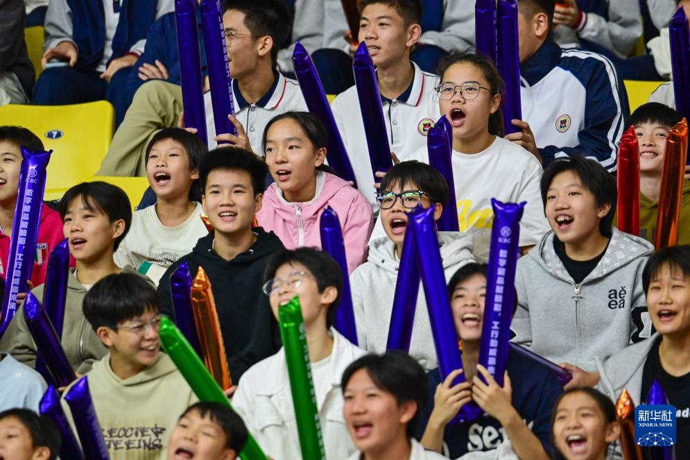 11月13日,現(xiàn)場球迷為廣東隊球員加油。