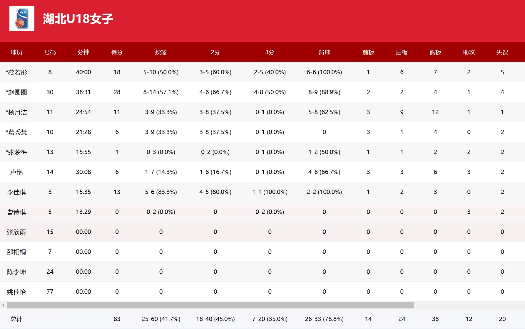 楊月潔依然是內(nèi)線支柱,拿下11分12籃板的兩雙成績(jī)。趙圓圓則擔(dān)任得分尖刀,14投8中砍下28分。主力控衛(wèi)蔡若彤也有18分7籃板進(jìn)賬。比較意外的是來(lái)自十堰的替補(bǔ)后衛(wèi)李佳琪,在出場(chǎng)的短短15分鐘時(shí)間里拿到13分成為奇兵。