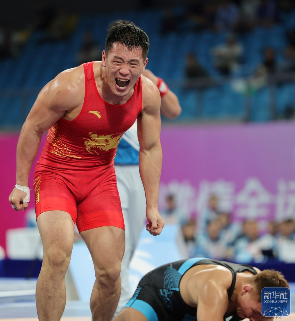 11月13日,第十五屆全國運(yùn)動會摔跤男子古典式97公斤級比賽在廣東清遠(yuǎn)舉行。重慶隊選手李一鳴奪得冠軍。