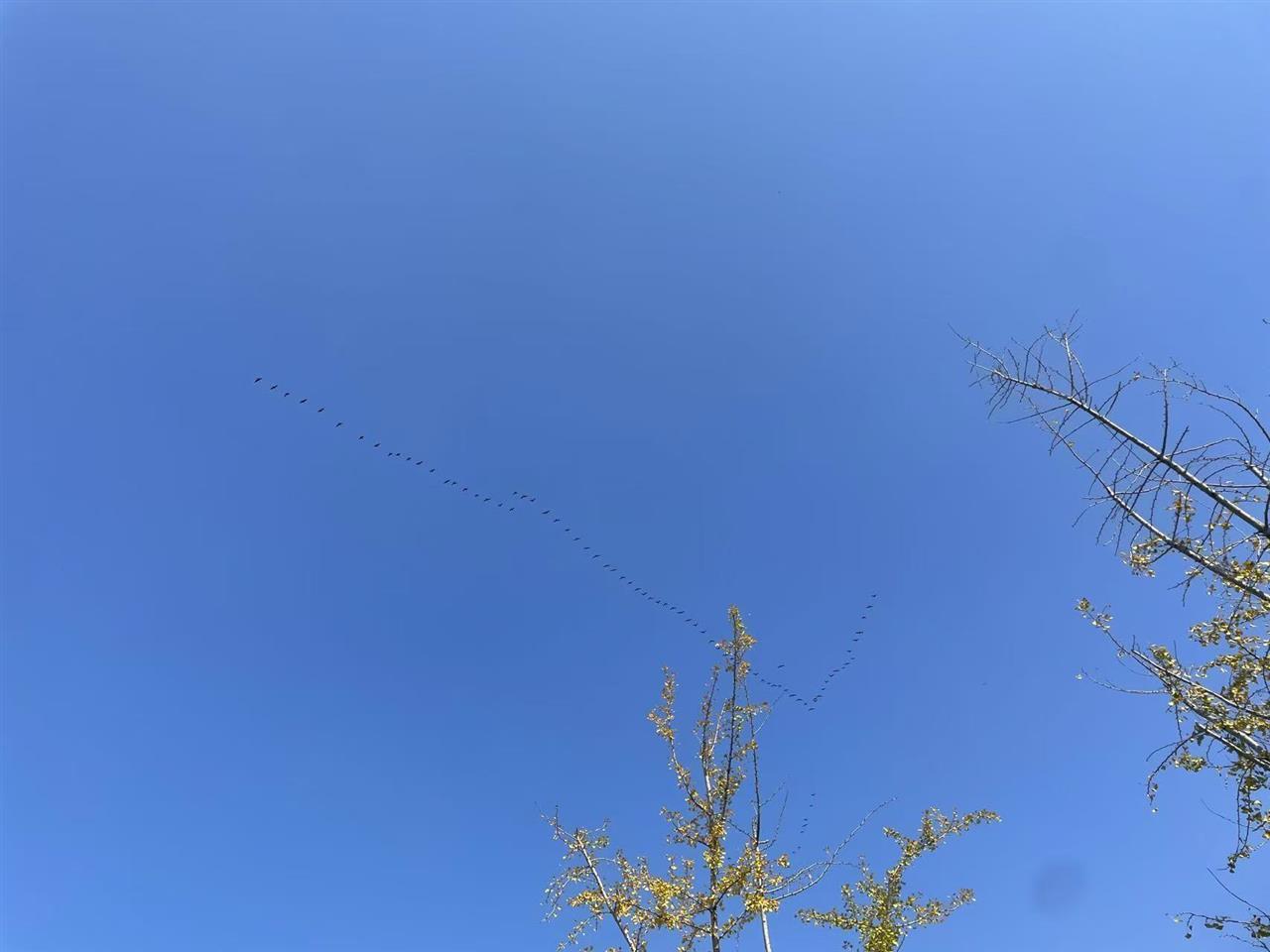 13日的武漢,天藍得透亮,空氣清新,大波游客涌入東湖,上午11時許,在東湖邊上,一位游客驚叫道:“快抬頭看!”原來一排人字形大雁正飛過東湖,特別震撼,有游客不由感慨:“晴空一鶴排云上,便引詩情到碧霄?!?/p>