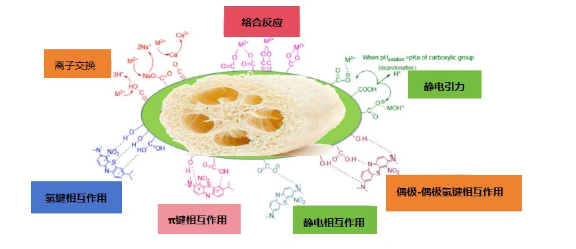 △絲瓜絡對染料和重金屬的吸附機理