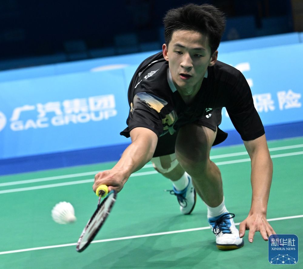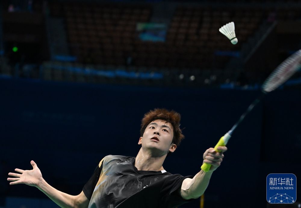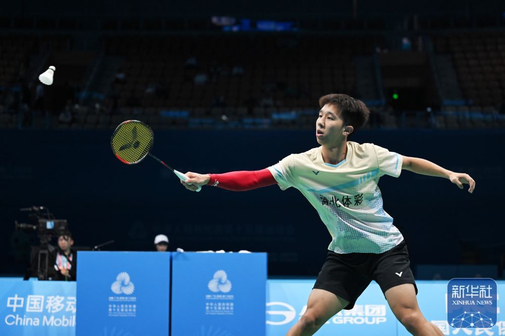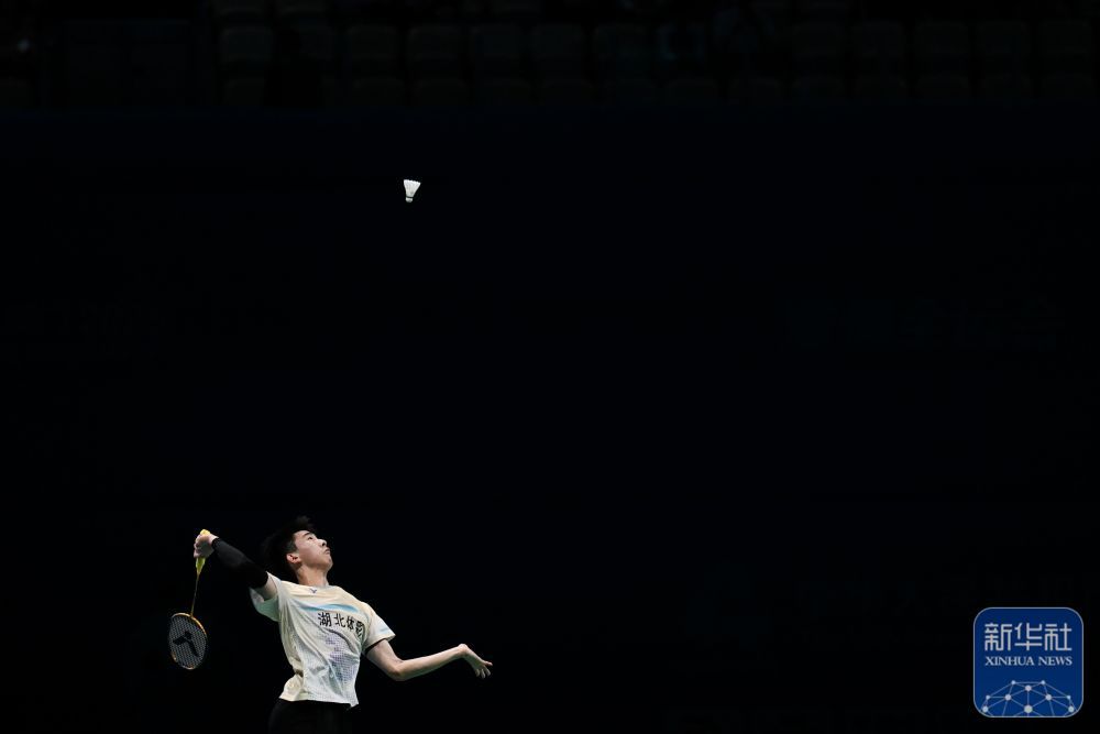↑ 湖北隊選手王子峻在男單比賽中回球。新華社記者 張龍 攝