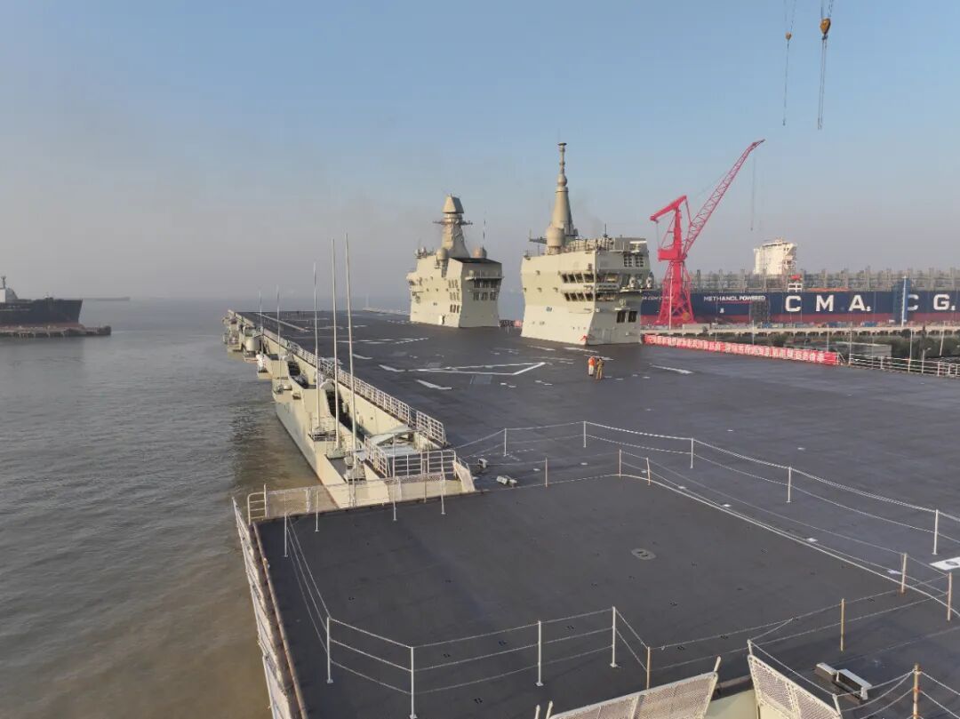 14日9時許,我國076兩棲攻擊艦首艦四川艦從上海滬東中華造船廠碼頭解纜啟航,赴相關海域開展首次航行試驗任務。