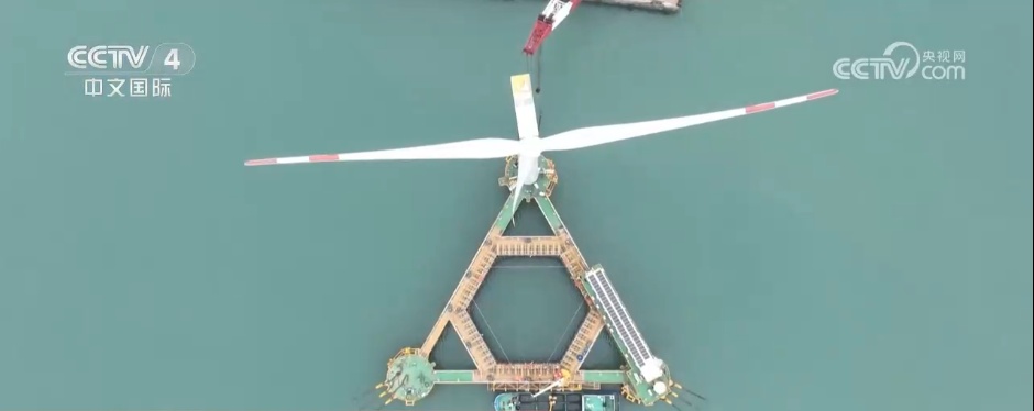 中國自主研發的全球首座風漁融合浮式平臺“國能共享號”最近迎來新一輪豐收。這座“海上發電、海下養魚”的一體化平臺,采用三立柱半潛式結構,呈正三角形布局。平臺邊長約70米,總高24米,重量達4900噸,相當于3000多輛小汽車的重量。平臺中央是容積一萬立方米的六邊形養殖網箱,目前養殖著3.5萬尾大黃魚。平臺每年發電量可達1600萬千瓦時,以火電供電碳排放計算,每年可減少約1.6萬噸二氧化碳排放。