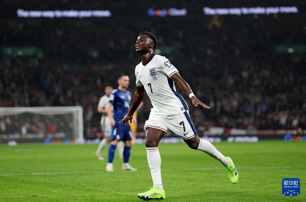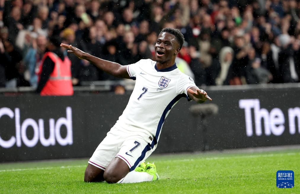 11月13日,英格蘭隊球員薩卡在比賽中慶祝進球。