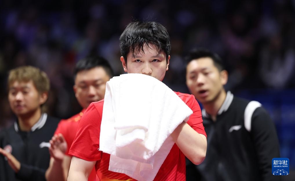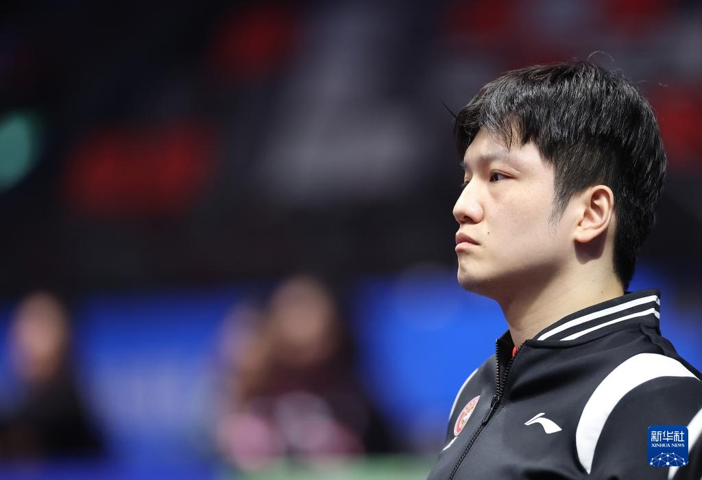 11月14日,上海隊選手樊振東在場邊觀戰。