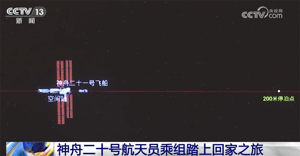 神舟二十一號先后在19米、200米停泊點停泊,并完成180度的掉頭。繞飛地球后,進入沖刺階段,共有四組關鍵動作: