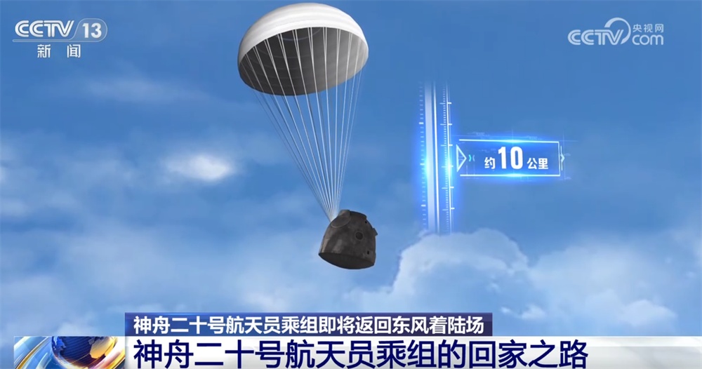 神二十航天員乘組預計14日下午返回東風著陸場。下面我們通過動畫演示,了解一下神舟二十號三名航天員的回家之路。