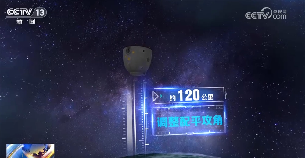 第一組動作先是一次調姿,飛船水平方向旋轉90度。軌道艙和返回艙之間分離,軌返分離之后,飛船進行二次調姿。兩次調姿、軌返分離,兩分鐘左右全部完成。隨后,返回制動持續150秒—180秒左右。