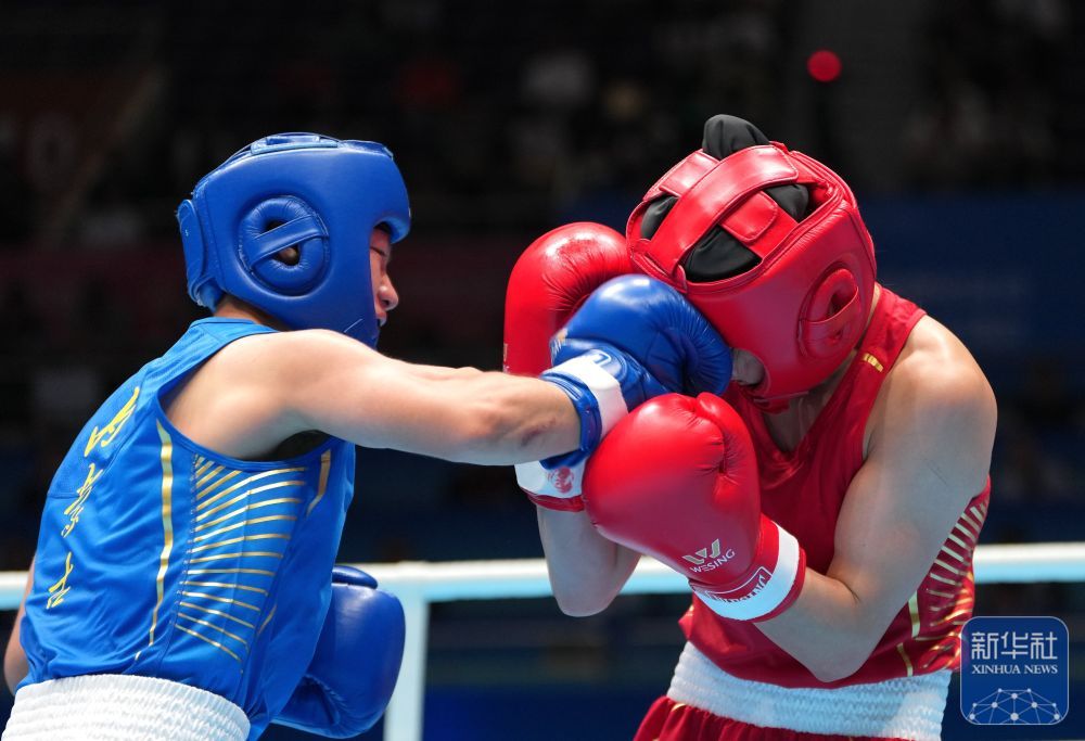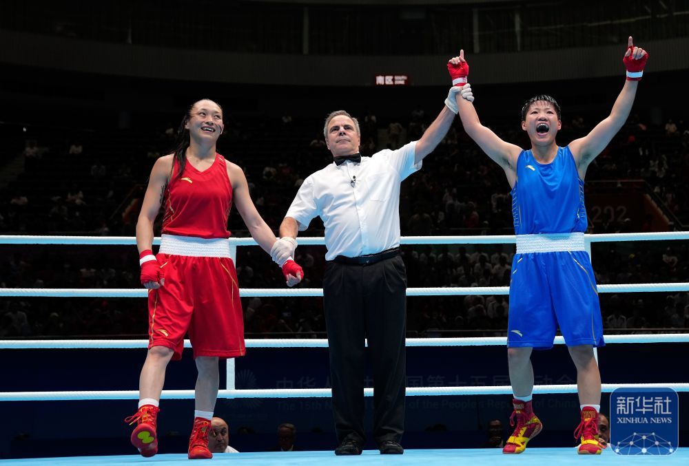 11月14日,在廣東深圳進行的第十五屆全國運動會拳擊女子54公斤級決賽中,內蒙古隊選手趙軒戰勝河北隊選手常園,奪得冠軍。