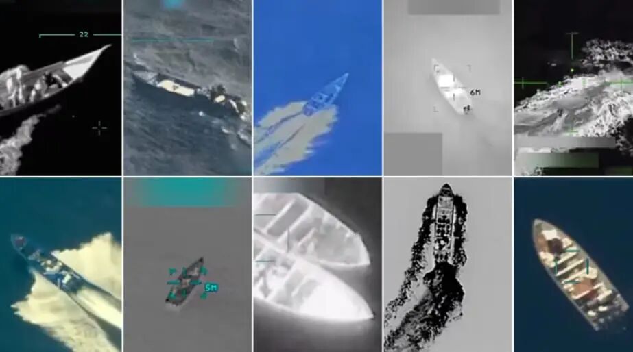 △美軍近期對加勒比海所謂“販毒船”進行打擊時的畫面