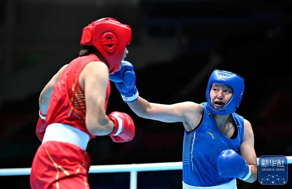 11月14日,在廣東深圳進行的第十五屆全國運動會拳擊女子75公斤級決賽中,浙江隊選手葉金戰勝黑龍江隊選手汪麗娜,奪得冠軍。