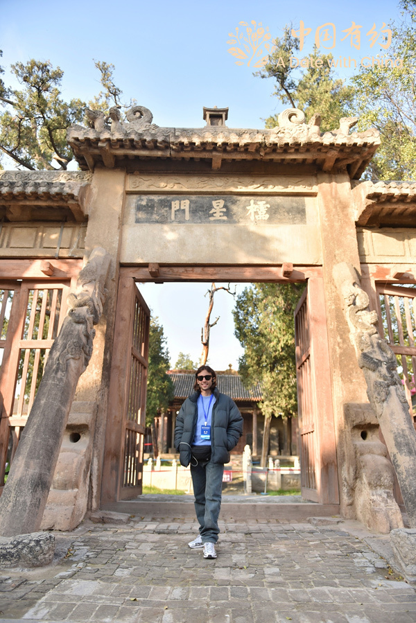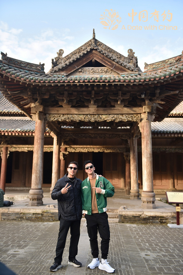 圖為國際友人與汾城古建筑合影。(圖片來源:中國日報網)