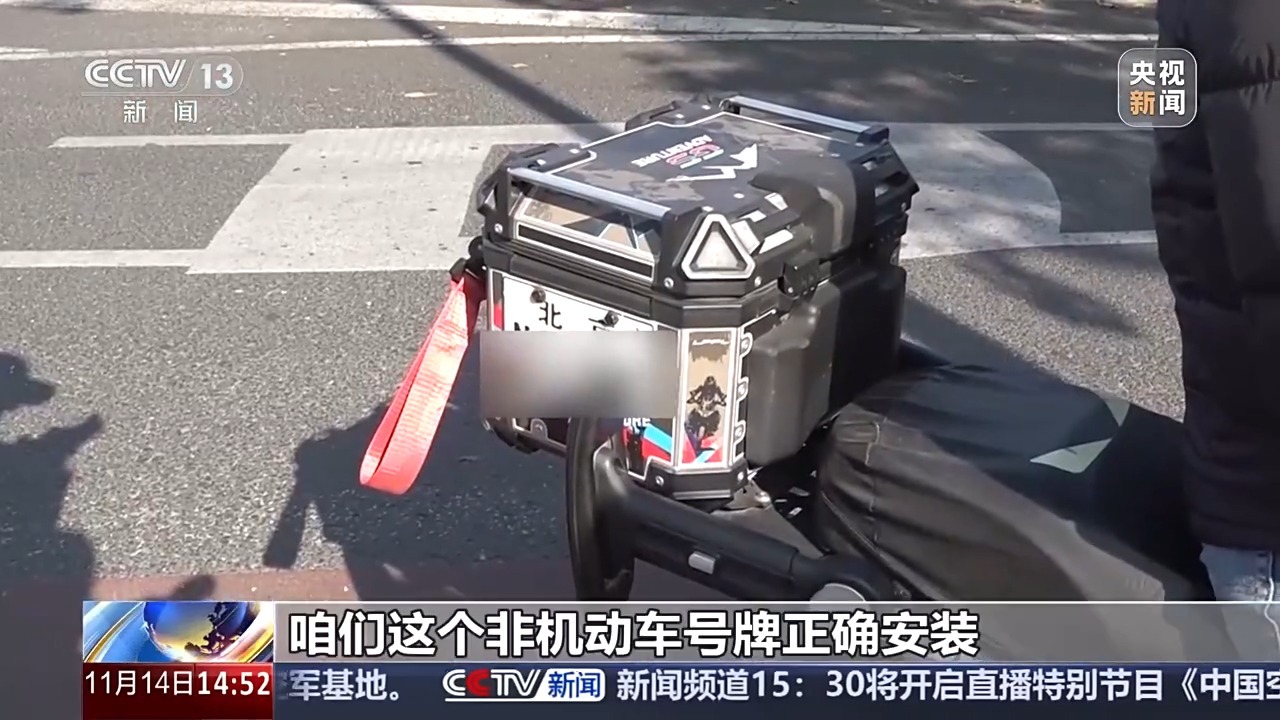 民警檢查發(fā)現(xiàn),這輛電動自行車號牌的安裝位置也不合規(guī)。