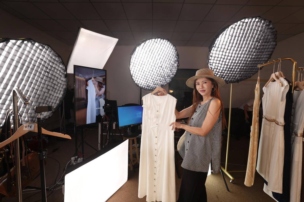 天門服裝電商主播進行直播帶貨。 (湖北日報通訊員 劉銀斌 攝)