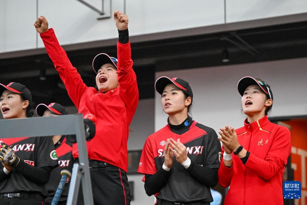 11月14日,陜西隊球員為隊友打出安打歡呼。