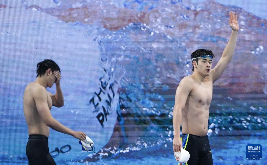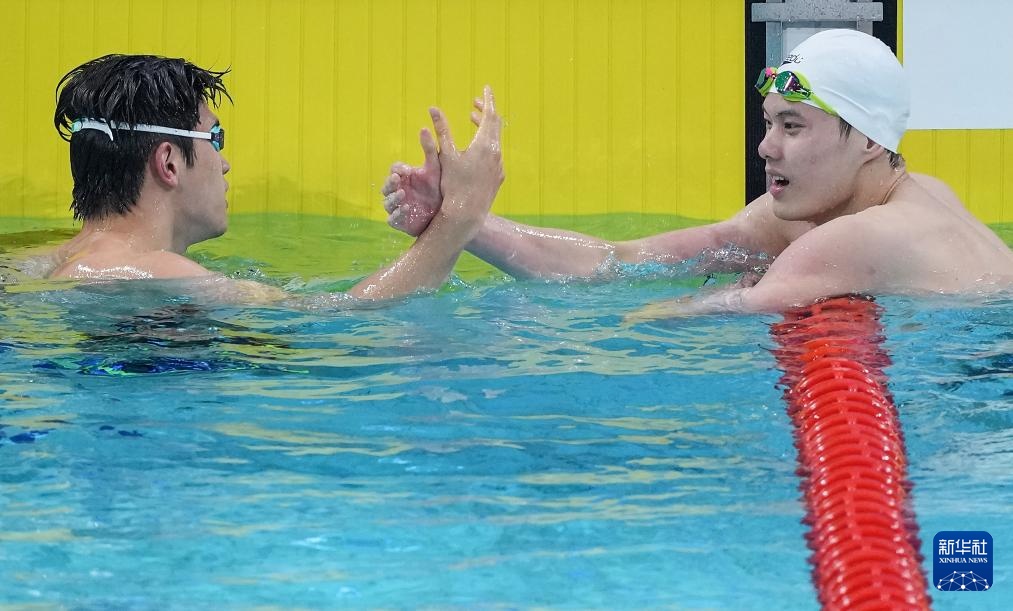 11月14日,浙江隊選手潘展樂(右)在比賽后向觀眾致意。他獲得冠軍。