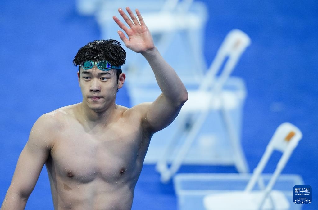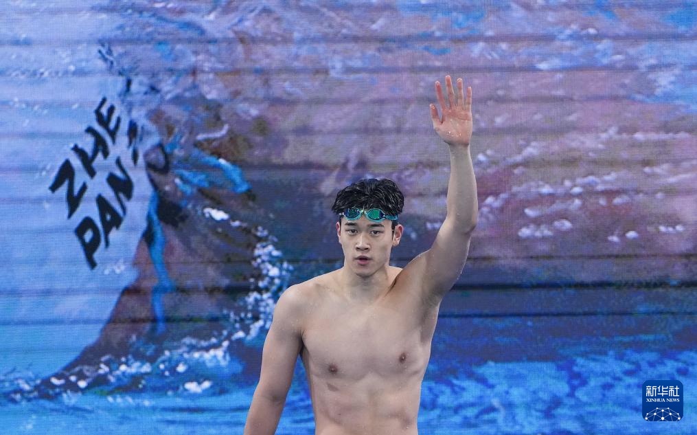 11月14日,浙江隊潘展樂在比賽后向觀眾致意。他獲得冠軍。