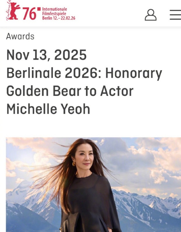 14日,柏林電影節宣布授予楊紫瓊終身成就獎榮譽金熊,將于2026年2月12日在下一屆柏林開幕之夜頒出。