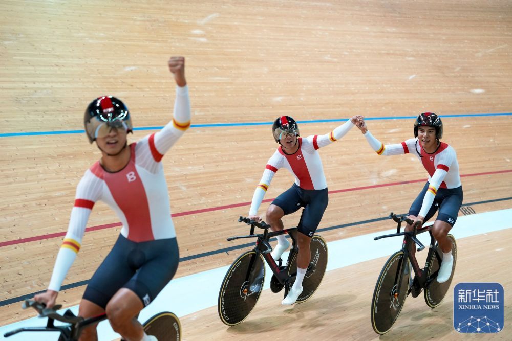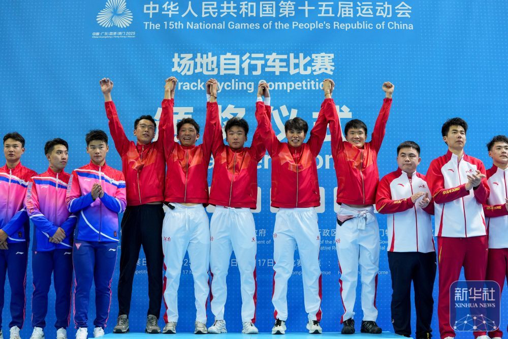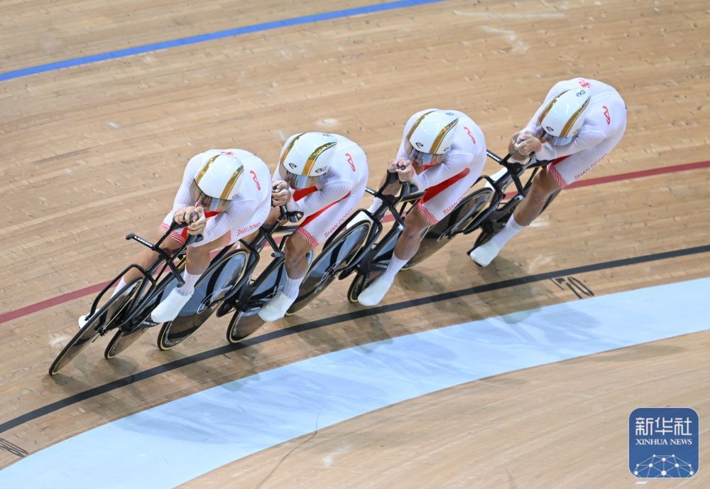 11月14日,第十五屆全國(guó)運(yùn)動(dòng)會(huì)場(chǎng)地自行車(chē)男子團(tuán)體追逐賽決賽在香港舉行。河南隊(duì)奪得冠軍并刷新全國(guó)紀(jì)錄。