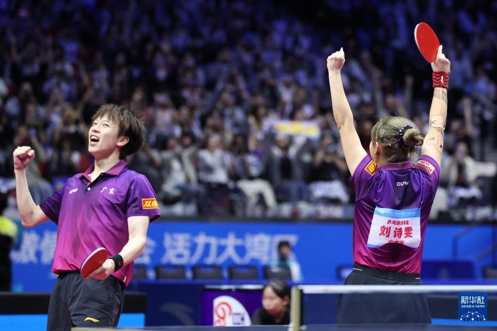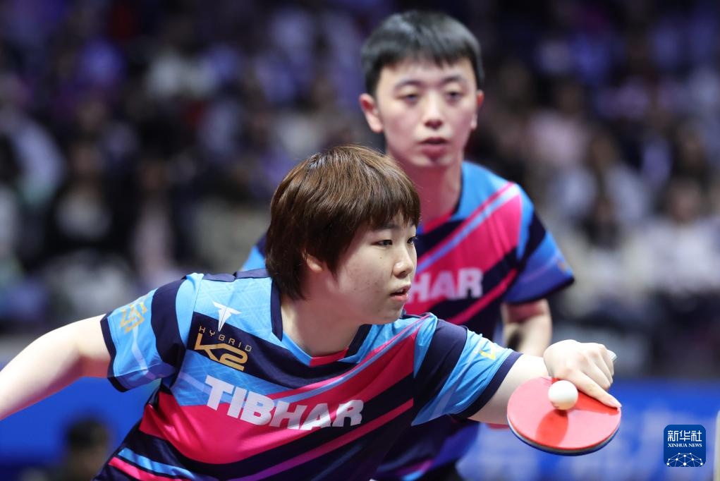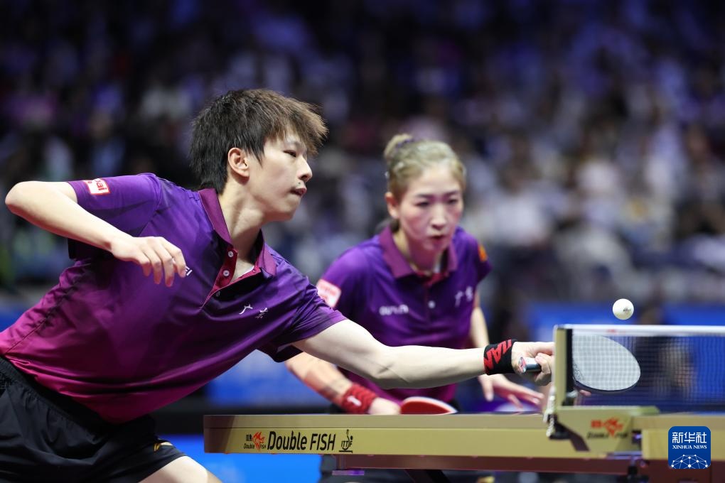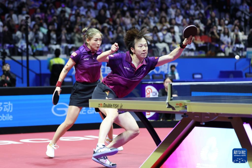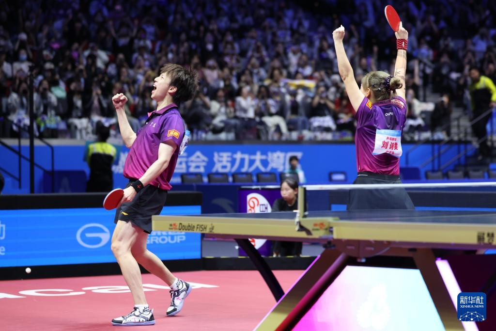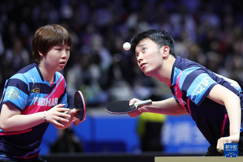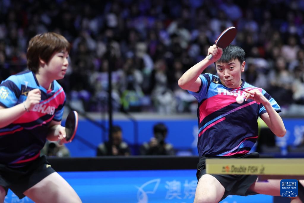 11月14日,廣東隊組合林高遠(右)/劉詩雯在比賽中回球。