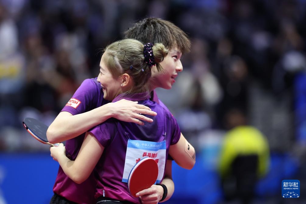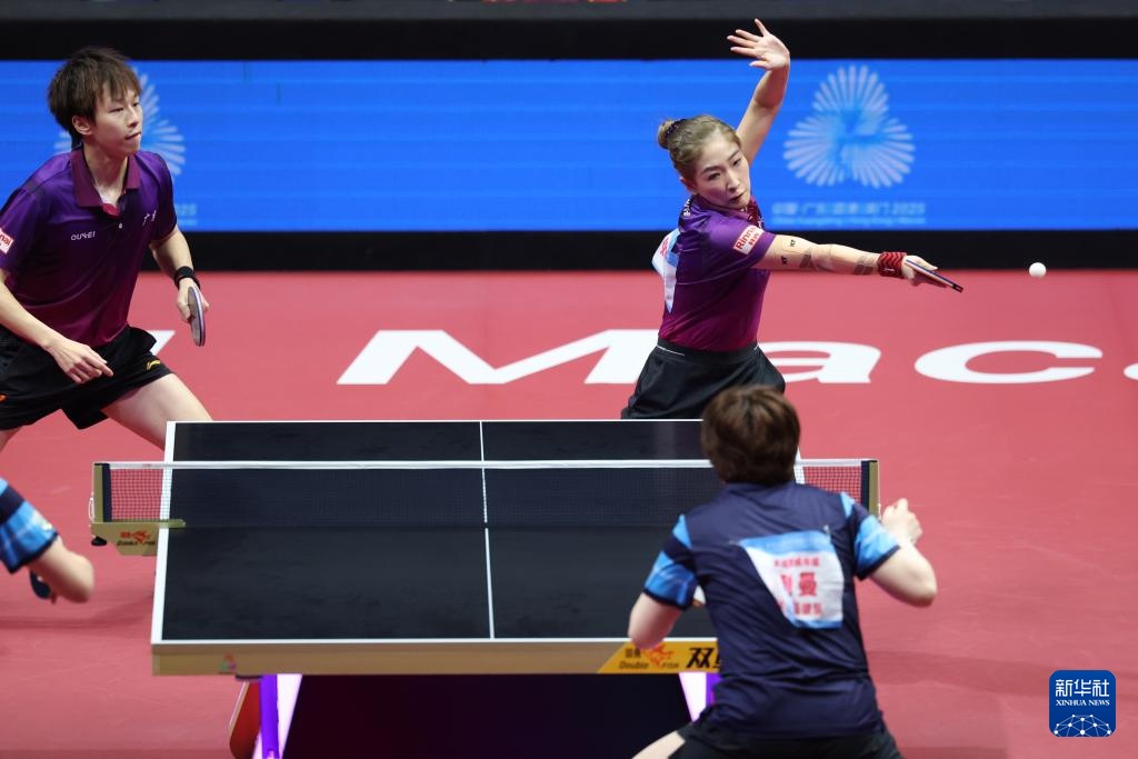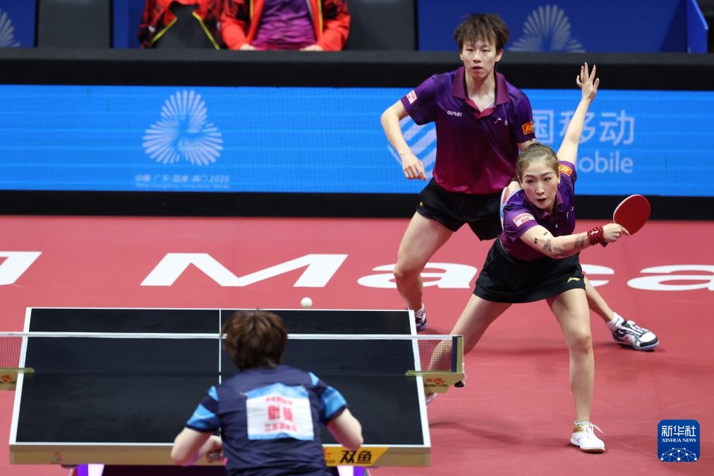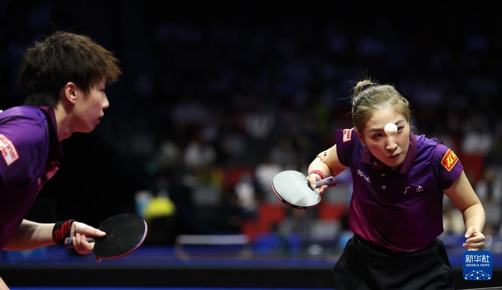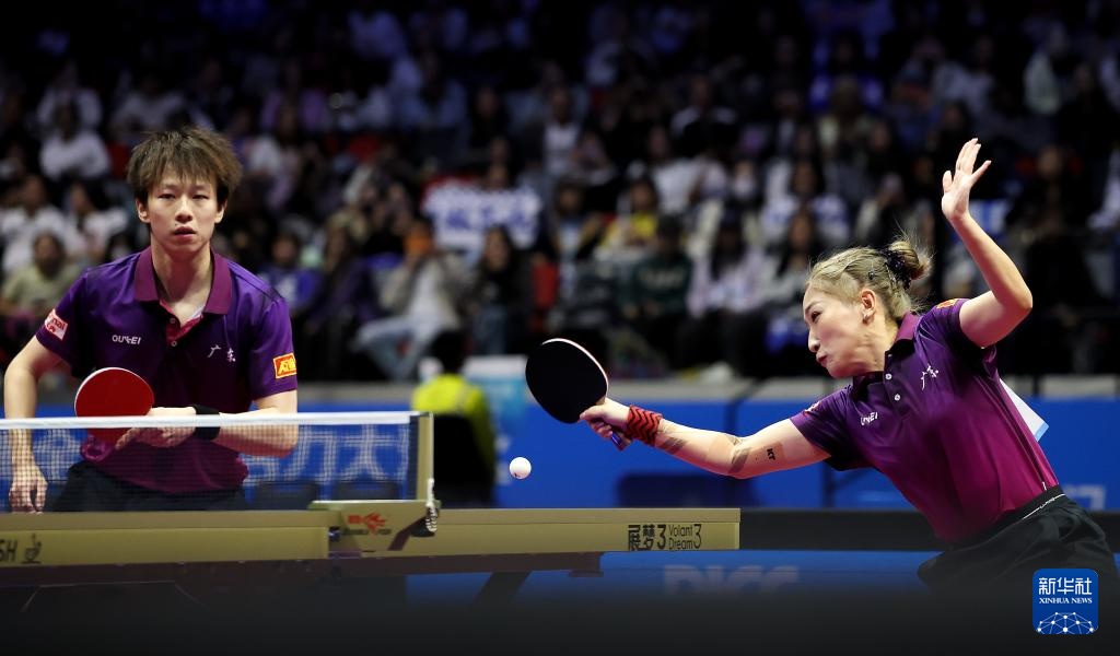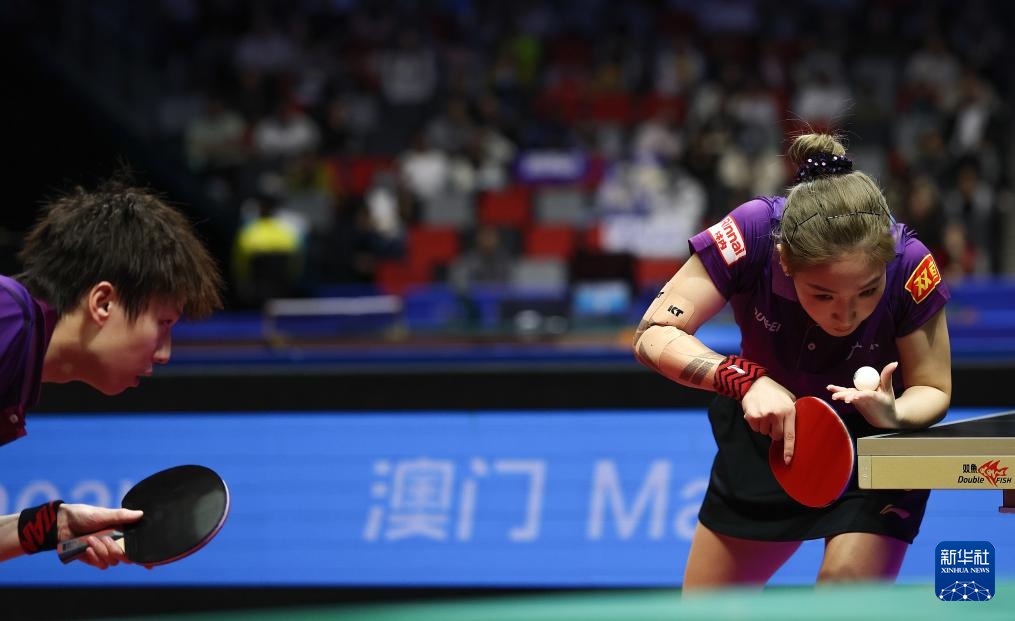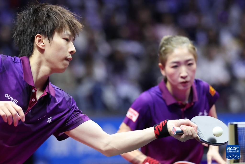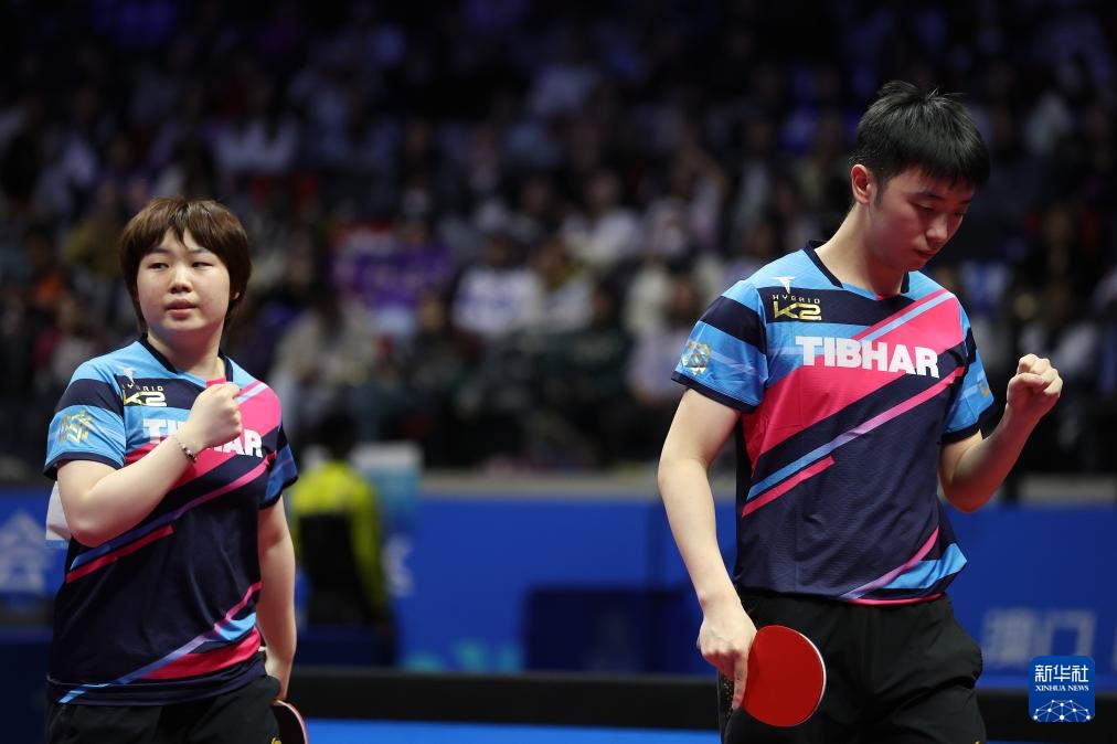 11月14日,廣東隊組合林高遠(右)/劉詩雯在比賽中回球。