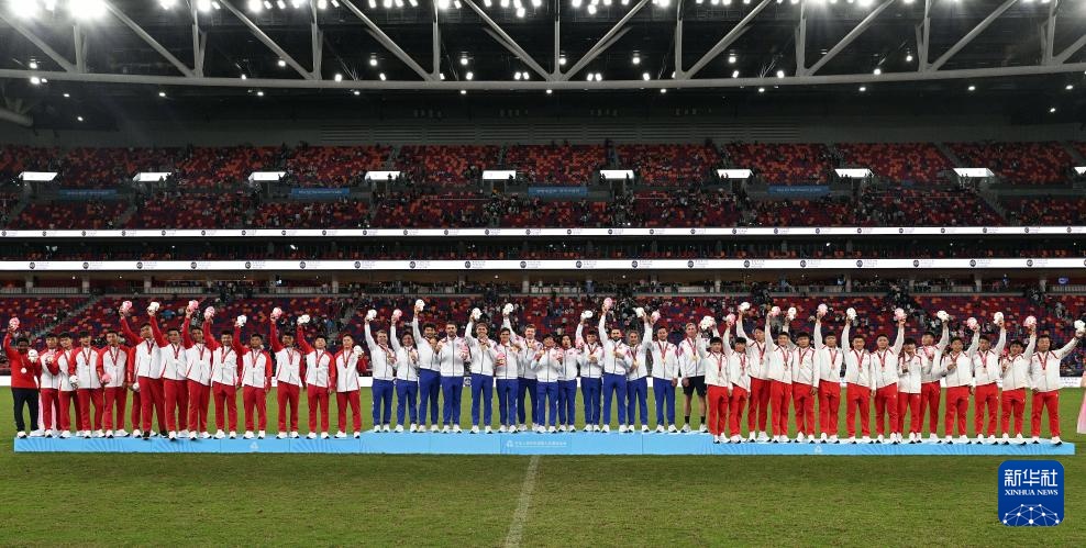 11月14日,獲得金牌的香港隊(duì)在頒獎(jiǎng)儀式上。