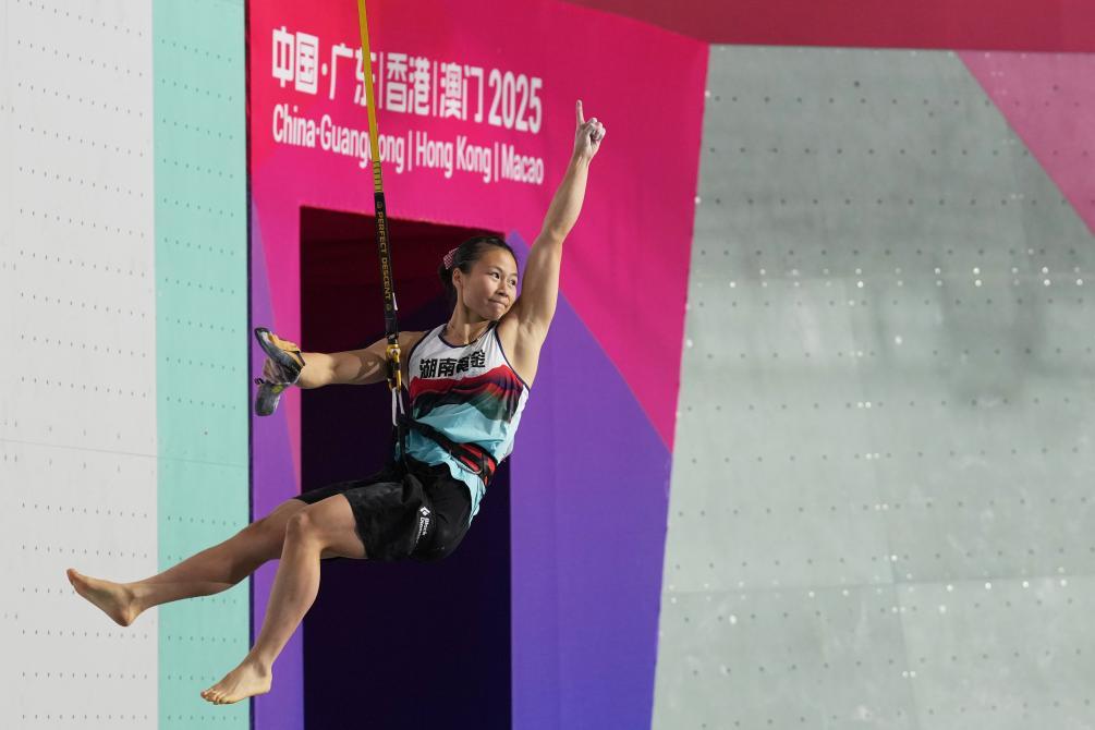 女子決賽,上屆亞軍鄧麗娟爬出6秒46,戰(zhàn)勝代表浙江的國(guó)家隊(duì)隊(duì)友周婭菲。今年已經(jīng)拿過(guò)世運(yùn)會(huì)和全錦賽冠軍的她說(shuō),這枚金牌并沒(méi)有看起來(lái)那么容易。
