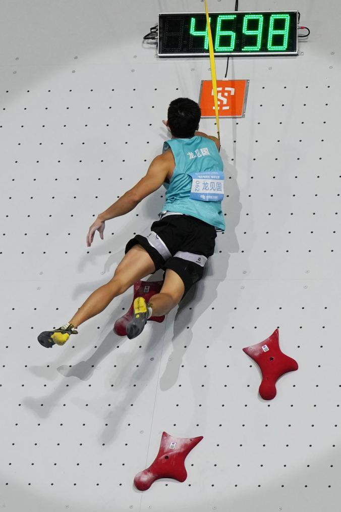 銅牌賽中,龍見(jiàn)國(guó)爬出4秒69取勝,也讓趙一程剛剛創(chuàng)造的全國(guó)紀(jì)錄作古。這一成績(jī)與世界紀(jì)錄僅相差0.05秒。