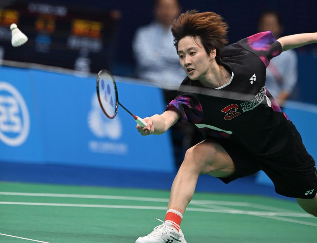 11月14日,浙江隊選手陳雨菲在女單比賽中回球。新華社記者 李紫恒 攝