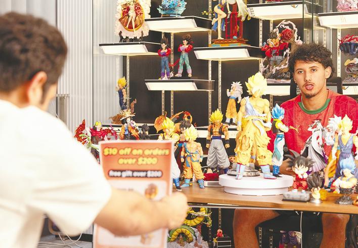 鄂州跨境電商產業園,來自巴基斯坦、摩洛哥的主播們在向美國粉絲推介Cosplay手辦。(湖北日報全媒記者 薛婷 攝)