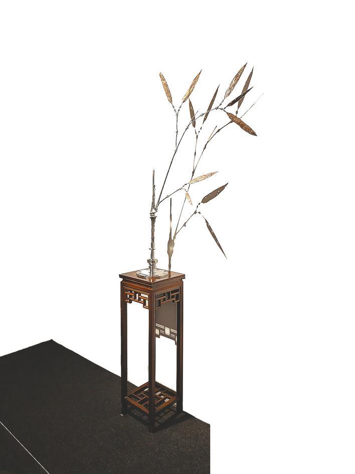 除了前面介紹的《千里江山》《山水譜》,還有許多作品都脫離了傳統水墨的框架,聚焦于水墨精神的表達。雕塑藝術家史金淞創作的《未來詩學研究·竹譜》是一件特別的作品,他以傳統中國畫中的“竹譜”為線索,呈現出傳統中象征君子風骨、清雅柔韌的翠竹形象。在燈光的映照下,竹枝的影子投射在墻壁上,傳統的水墨元素被充滿科技感和空間感的光影美學巧妙表達,別具意蘊。