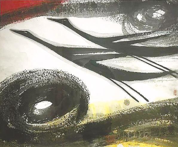 武漢美術館的“水墨文章”展覽就展出了一幅周韶華于1990年創作的《楚風圖》,畫中的主體是兩只墨色的鳳鳥相依相伴,周圍的流云自在地飄拂,呈現出云卷云舒的意境。策展人荊菲介紹:“包括這幅《楚風圖》在內的一批作品,周韶華先生都是從傳統繪畫里借用楚文化等元素,通過對這些元素的加工和轉換,來進行當代水墨的創作?!?/p>