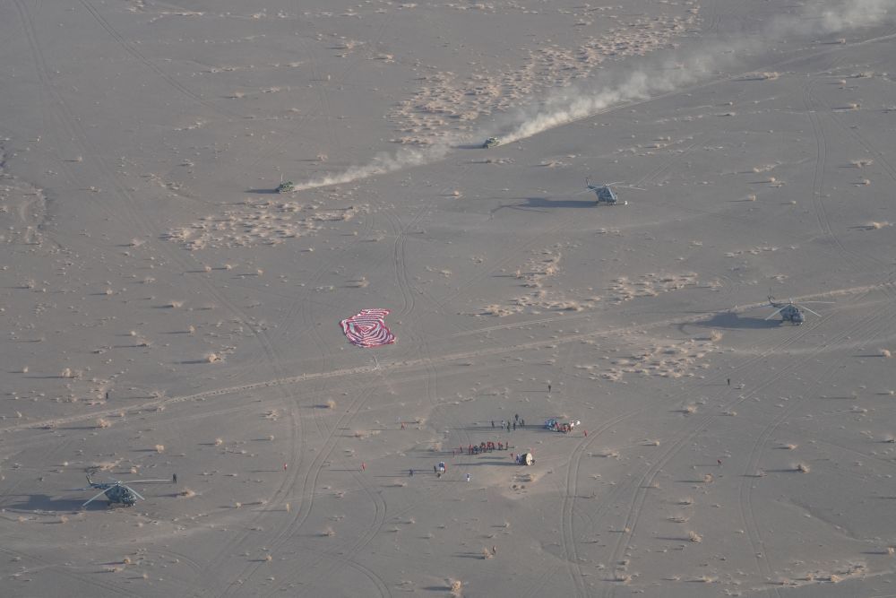 14日下午,返回艙主傘打開瞬間,酒泉衛星發射中心李斌斌已鎖定跟蹤,實時畫面傳向指控大廳。空中分隊、地面分隊等向落點集結,共同搭建起“空地一體、立體協同”多維搜救體系。
