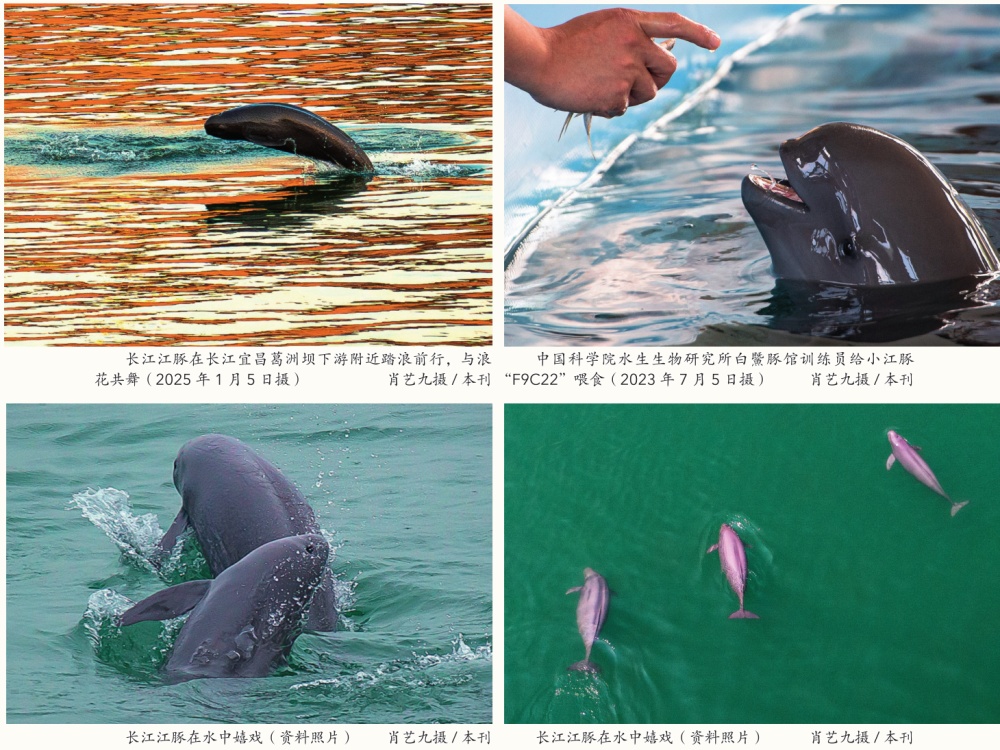 珍稀物種頻頻歸來。數據顯示,2022年全流域江豚數量達1249頭,較2017年增長23.42%,實現歷史性“止跌回升”。江豚逐浪成為宜昌、岳陽、武漢、安慶等沿江城市熱門景觀。