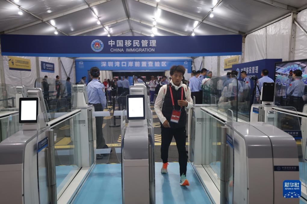 11月15日,比賽前,參賽選手在深圳灣口岸前置查驗區完成海關查驗手續。