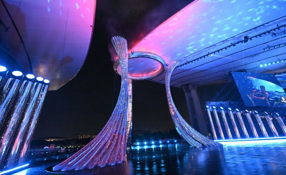 此外,主火炬塔的“無火燃燒”,則是一場關于綠色經濟的實踐。傳統火炬塔的碳排放是筆不小的數字,此次熊熊“燃燒”的火光則并非真實火焰,簡言之,是用水霧塑造火焰之形,用光電科技賦予火焰之魂。