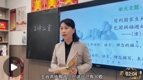 從教30載,王肖燕堅信“身教”勝于“言傳”是對學生最好的教育,她用愛心和智慧為學生的成長筑牢根基,她為遲到的學生送上小鬧鐘,提醒生病的孩子按時吃藥……用點滴關懷溫暖學生的心,推動班級形成“人人有事做,事事有人做”的凝聚力。王肖燕潛心教研,以智啟智,她的課堂生動有趣,通過繪本閱讀、表演課本劇、即興演講等活動,激發學生的語文學習興趣。她不斷學習新知識新技能,全方位提升理論及業務素養,多次承擔省、市公開課任務,對青年教師悉心指導,先后兩次參與教育援疆工作,助力教育均衡發展。