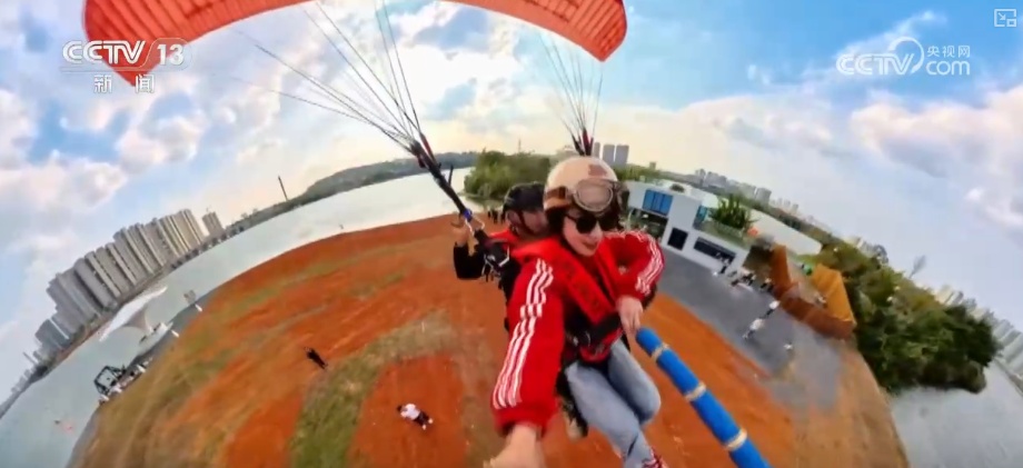 在永州,當(dāng)?shù)匾泽w育賽事為媒介,更多新的消費(fèi)業(yè)態(tài)正在不斷滿足游客的需求。走進(jìn)剛提升改造后的宋家洲生態(tài)體育公園,一場牽引式滑翔傘運(yùn)動(dòng)就吸引了不少消費(fèi)者。穿戴好裝備,在教練的引導(dǎo)下,一躍而起,已經(jīng)在百米高空翱翔。