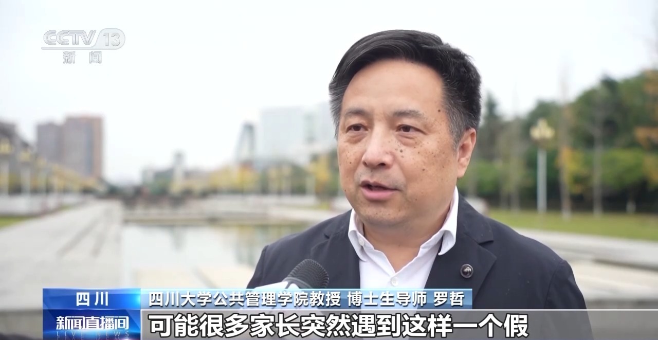 四川大學(xué)公共管理學(xué)院教授 博士生導(dǎo)師 羅哲:我們用托底+協(xié)同來(lái)推進(jìn),可能很多家長(zhǎng)突然遇到這樣一個(gè)假,覺得年休假休完了等等,不能保證。在這樣的特殊情況下,先實(shí)行托底,只要家長(zhǎng)不方便,我們就用學(xué)校和社會(huì)的方法來(lái)托底。協(xié)同是什么?我們的人社和工會(huì)部門就協(xié)調(diào)了勞動(dòng)者的權(quán)益保護(hù)和他的假期的合理安排。我們的文化部門就協(xié)調(diào)了所有的文博資源的開放。