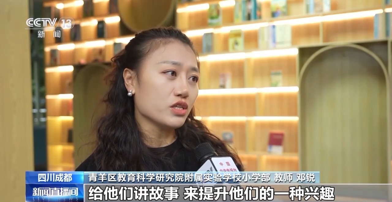 青羊區(qū)教育科學(xué)研究院附屬實(shí)驗(yàn)學(xué)校小學(xué)部教師 鄧銳:一到三年級(jí)的孩子他們比較喜歡聽故事,所以我們就采用繪本來(lái)入手,給他們講故事,來(lái)提升他們的興趣。