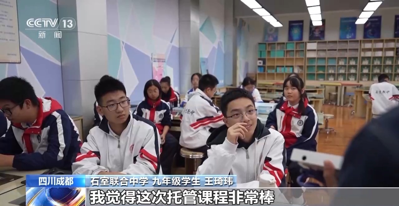成都石室聯(lián)合中學(xué)九年級(jí)學(xué)生 王琦瑋:平時(shí)我就比較喜歡人工智能,但是因?yàn)槠綍r(shí)課程比較忙,所以就沒什么時(shí)間去接觸,我覺得這次托管課程非常棒。
