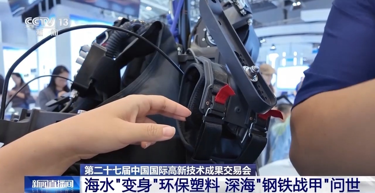 中國科學院深圳先進技術研究院助理研究員 王向陽:石油管道的巡檢維修、水下的搜救和打撈、生態保護,比如觀察珊瑚的發育情況,它的應用領域非常多。外載的輔助機械臂,能夠幫助潛水員長時間推舉清潔裝備,我們側邊有驅動裝備,幫助潛水員在水下的移動更加省力。相比穿戴傳統的潛水裝備,它能夠有效降低單位時間的耗氣速率達到30%左右。