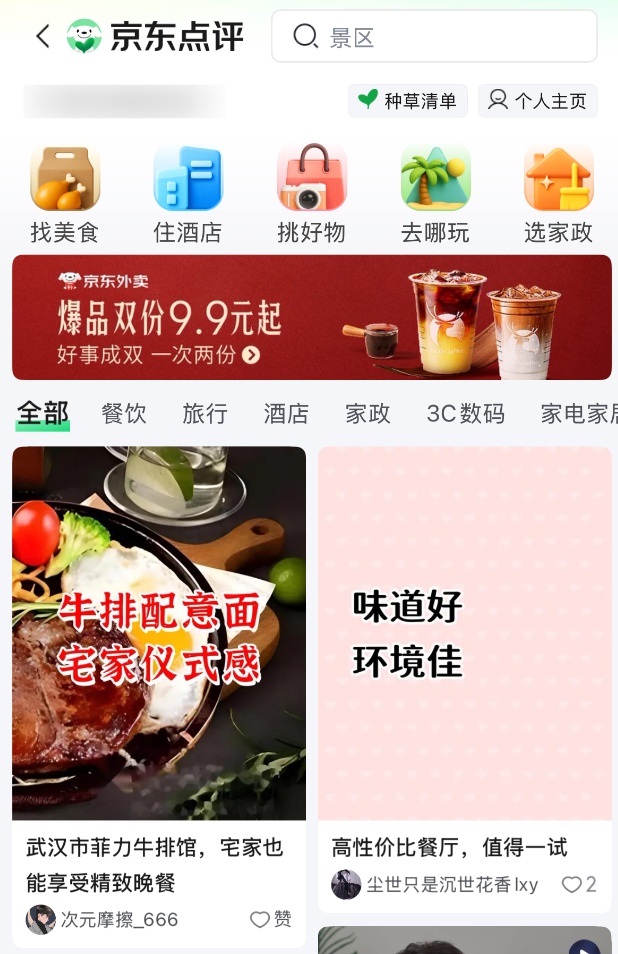 記者查詢發現,“京東點評”位于京東秒送板塊,分為“找美食”“住酒店”“挑好物”“去哪玩”“選家政”等板塊,主要內容以圖片 + 文字的形式呈現,以分享本地生活為主。