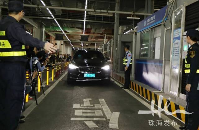 11月15日零時整,在港珠澳大橋珠海公路口岸,“粵車南下”正式實施后,首輛獲準的粵牌私家車順利通關。